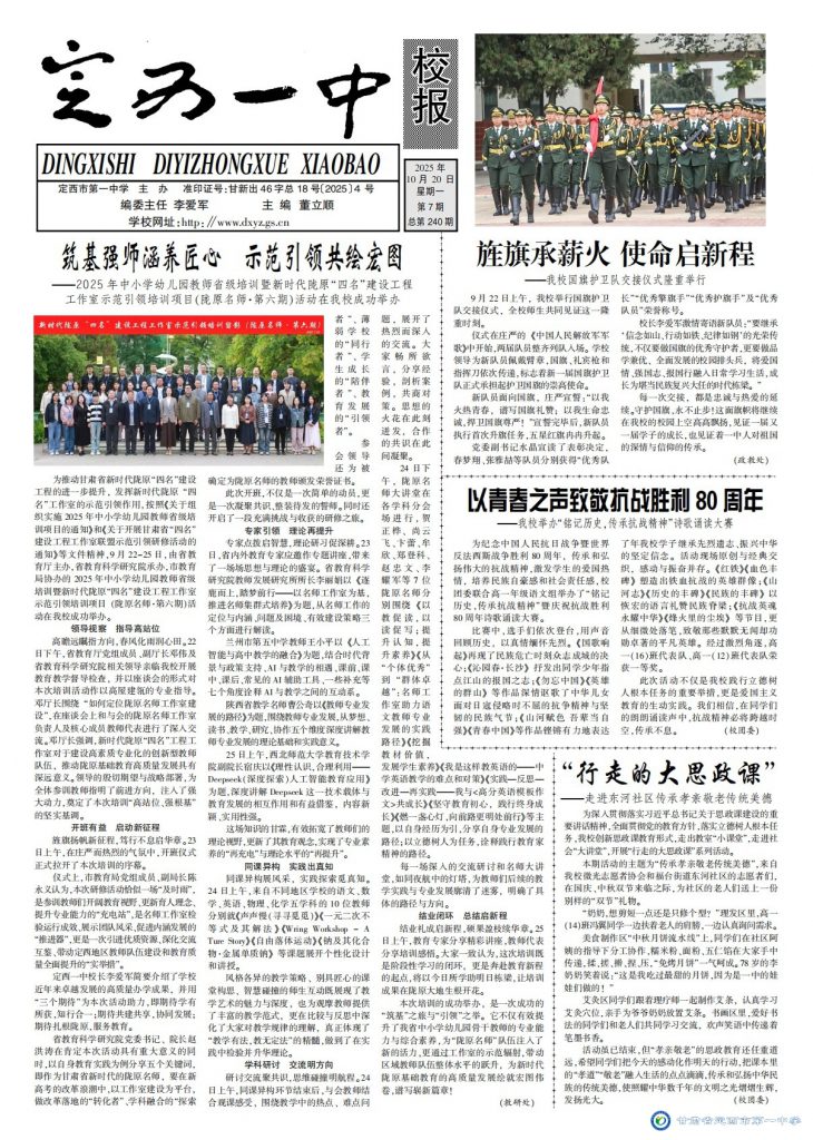]]>為推動(dòng)甘肅省新時(shí)代隴原“四名”建設(shè)工程的進(jìn)一步提升,發(fā)揮新時(shí)代隴原“四名”工作室的示范引領(lǐng)作用,按照《關(guān)于組織實(shí)施2025年中小學(xué)幼兒園教師省級(jí)培訓(xùn)項(xiàng)目的通知》和《關(guān)于開展甘肅省“四名”建設(shè)工程工作室聯(lián)盟示范引領(lǐng)研修活動(dòng)的通知》等文件要求,2025年9月22-25日,由甘肅省教育廳主辦,甘肅省教育科學(xué)研究院承辦,甘肅省定西市教育局、甘肅省定西市第一中學(xué)、定西市普通高中英語(yǔ)學(xué)科教研基地、甘肅省新時(shí)代隴原“四名”建設(shè)工程鄭登科名師工作室等單位協(xié)辦的2025年中小學(xué)幼兒園教師省級(jí)培訓(xùn)暨新時(shí)代隴原“四名”建設(shè)工程工作室示范引領(lǐng)培訓(xùn)項(xiàng)目(隴原名師·第六期)活動(dòng)在我校成功舉辦。