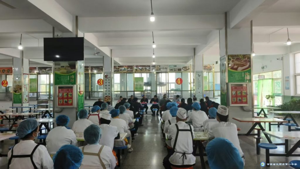 食堂承包人定西寶源商貿(mào)有限公司董事長祁國華從企業(yè)經(jīng)營角度,就如何確保食品安全、持續(xù)改善飯菜質(zhì)量、增加供應(yīng)品種、全方位服務(wù)好師生等方面,向全體工作人員提出希望和要求。
